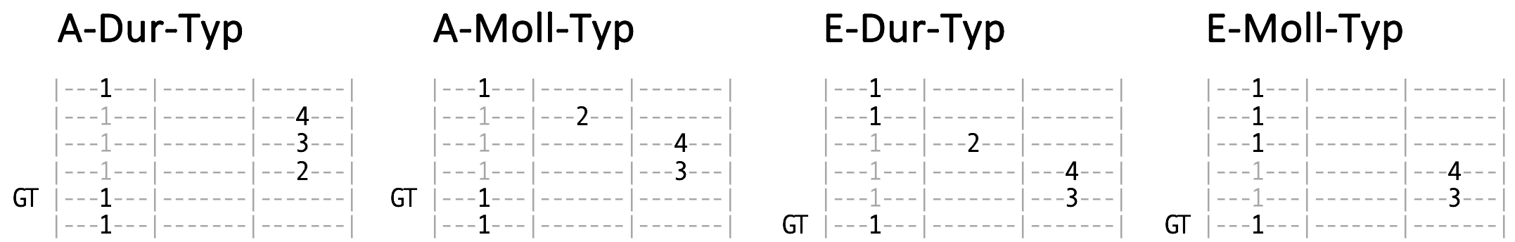 Mit vier Barré-Griffen alle Dur- und Moll-Akkorde spielen
